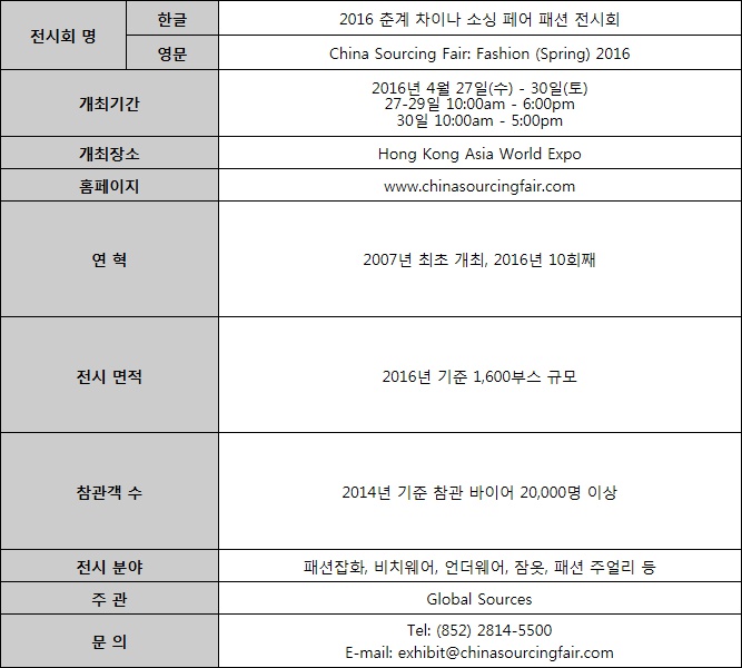 ■ 2016 홍콩 국제 언더웨어 소재 박람회