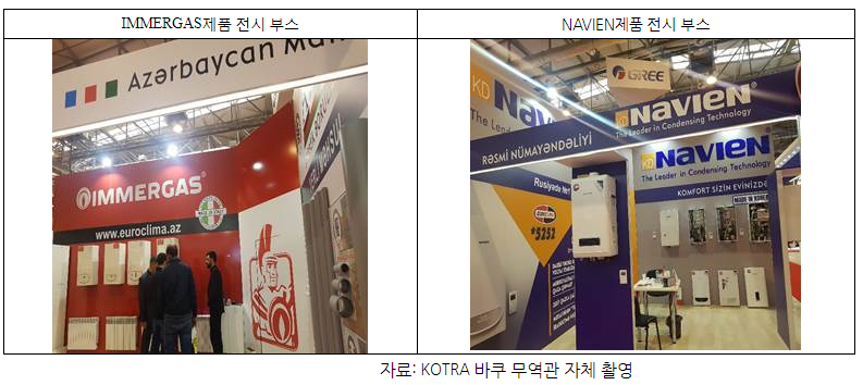 - 다만, 냉난방설비 전시회(Aquan Therm 2019)에서 현지 딜러가 한국 업체 제품인 NAVIEN 난방기와 이탈리아 업체 제품인 IMMERGAS 난방기를 함께 홍보 중이었음.