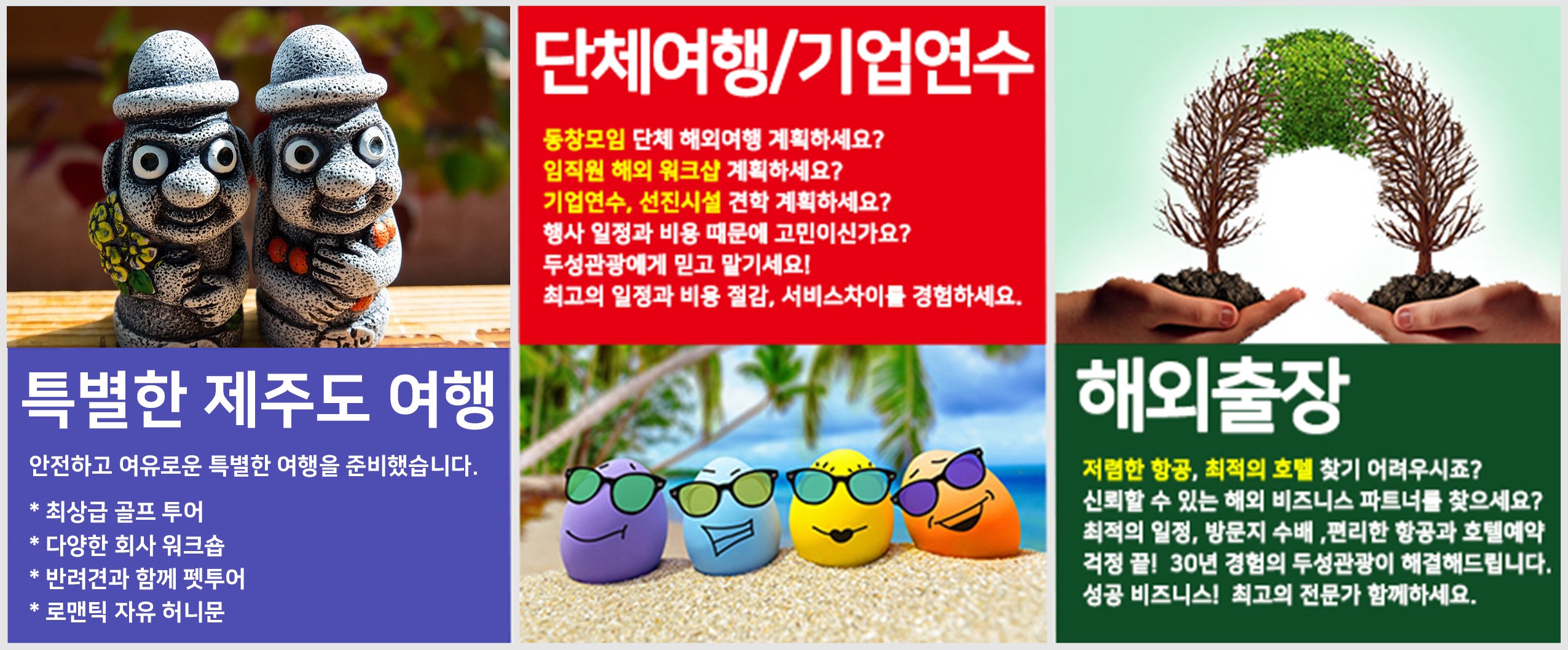 신청절차 ■ 신청마감 : 출발 3주전까지 여권사본과 참가신청을 보내주셔야 합니다. (항공사 명단 3주전 마감 / 일부단체제외) ■ 신청방법 : 신청서를 작성하신 후 메일 또는 FAX로 보내주시고, 1人 신청금 (미주/유럽 50만원, 기타 지역 30만원) 입금 ■ 입금계좌 : 신한은행 140-001-014282 / 예금주 : 두성관광 (회사명으로 입금바랍니다) 기타안내 ■ 단체행사(10인 이상), 소그룹(4-8인), 개별출발, 업체방문 및 시장조사 등 개별행사 가능합니다. ■ 상기 일정은 항공과 현지 사정에 따라 변동될 수 있습니다. ■ 당사는 가이드, 기사 팁 등 일체의 잡비를 걷지 않습니다. ■ 전시회의 개최일 변경, 출품품목 등은 해당 사이트에서 직접 확인하시기 바라며, 이에 대한 (주)두성관광의 책임은 없습니다. |