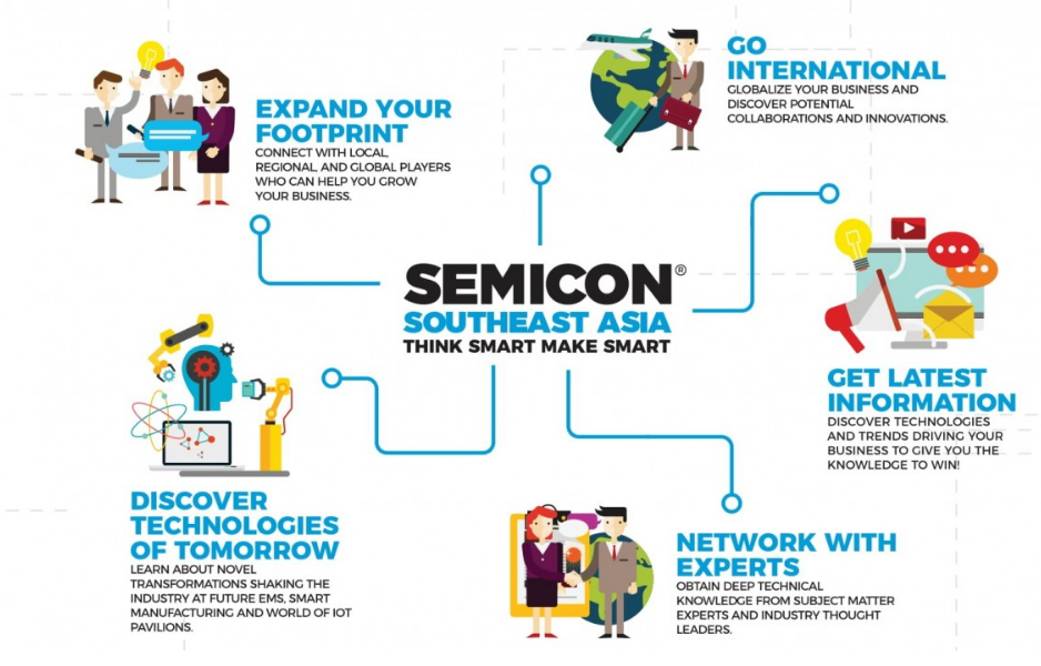 일본/중국과 함께 아시아 3대 반도체 박람회인 말레이시아 아시아 반도체전이 성대히 개최됩니다. 이 지역의 고성장 지역중 하나인 말레이시아는 전체 제조업 생산량의 44 %, 지역의 총 GDP의 26%를 차지하며 2018년에는 수출로 약 3,820 억 달러의 수익을 창출할 것으로 예상됩니다. 부스 설치사를 위한 일정도 모객중이오니 별도 문의 바랍니다. 자세한 세부지도 및 호텔 안내도는 별도 문의 요청 바랍니다. 10인 이상인 경우 별도 행사 가능하니 문의바랍니다.