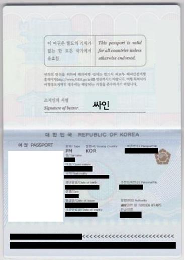 중국단체비자 신청하시는 분들은 아래 사진과 같이 여권 앞면을